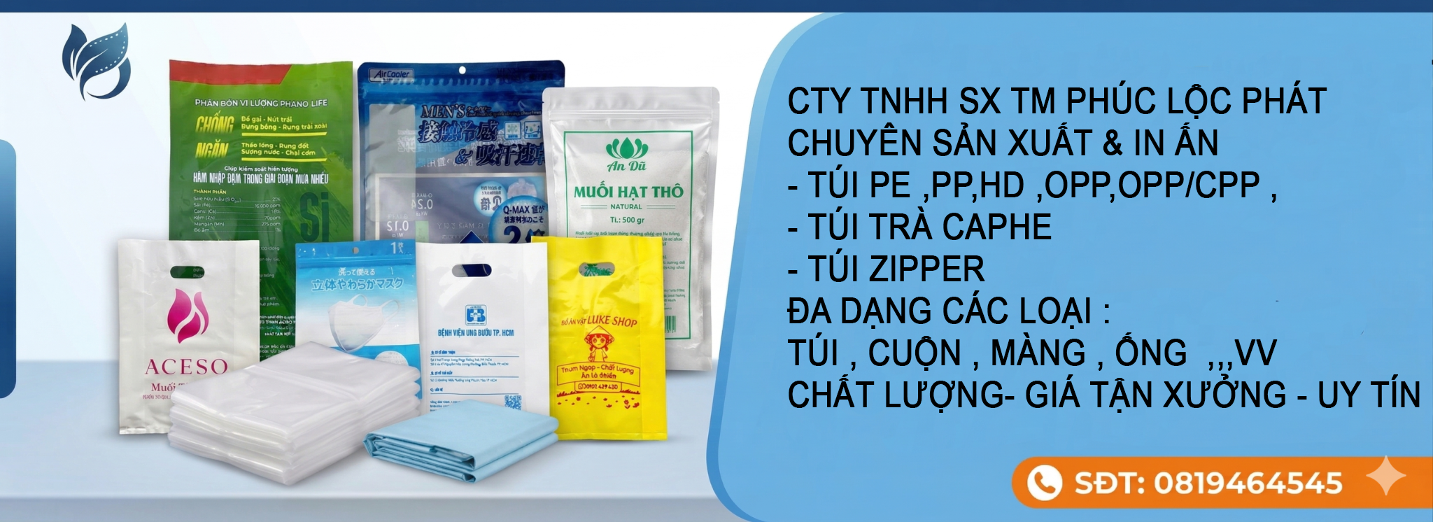 CÔNG TY TNHH SX TM DV Phúc Lộc Phát chuyên sản xuất, in ấn bằng công nghệ in ống đồng trên tất cả những sản phẩm bao bì nhựa (túi nylon) từ hạt nhựa nguyên sinh. Chúng tôi nhận in gia công, sản xuất đơn hàng theo yêu cầu.